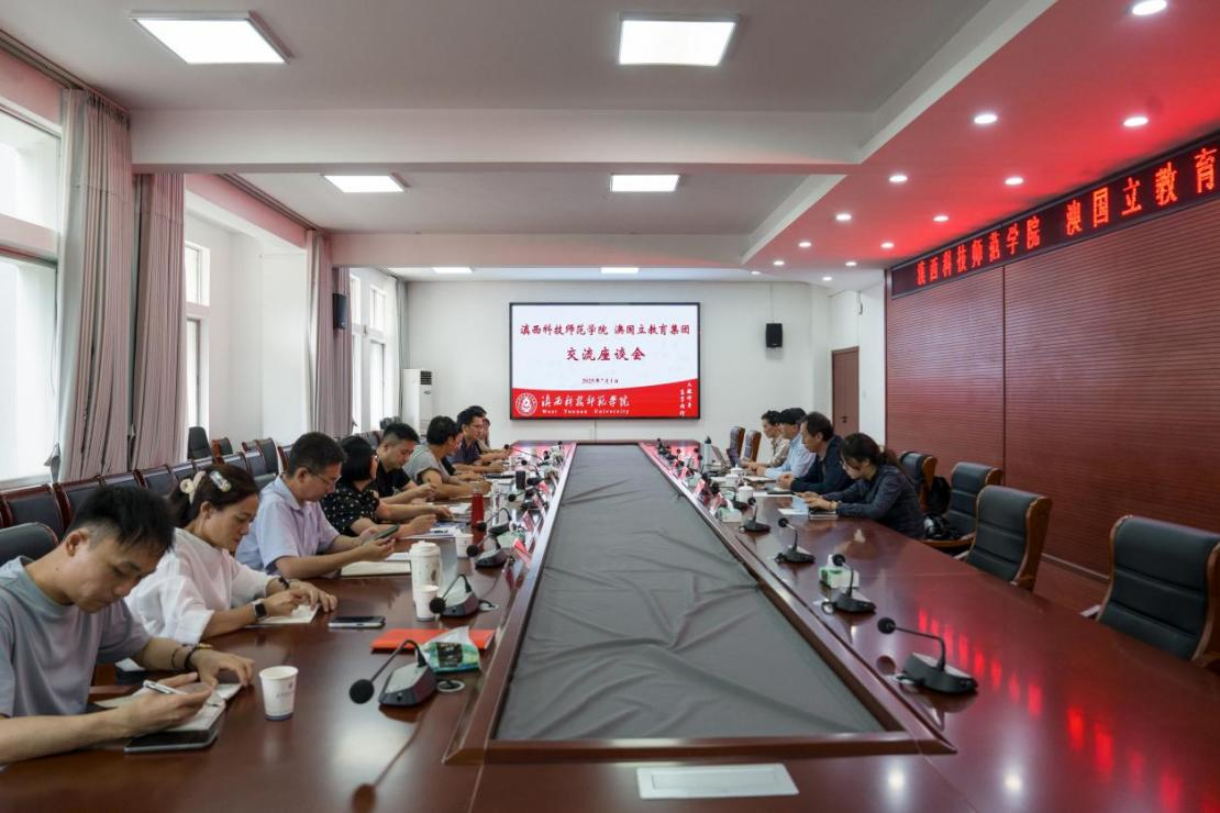 2025年7月1日下午,澳国立教育集团代表张杰一行4人到校交流座谈,校党委委员、副校长梅英出席座谈会。